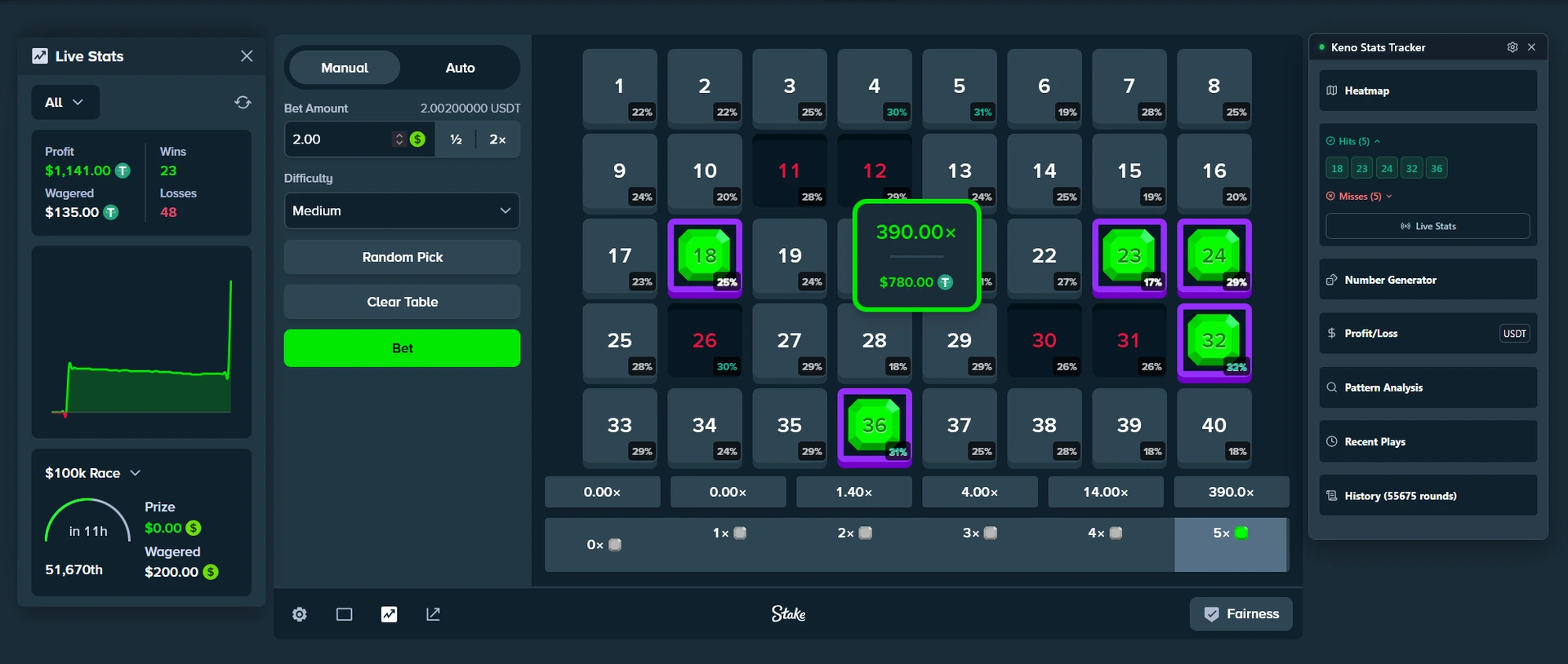 Data-driven number selection for Stake.com Keno